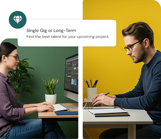 Whatever your project, our elite freelancers can bring it to life. From single gigs to ongoing projects, our talent cant help.